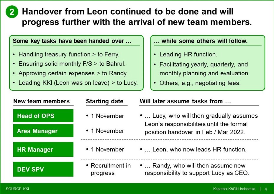 2. Handover process from Leon continued to be done. It will progress further as 3 new team members are joining in November.